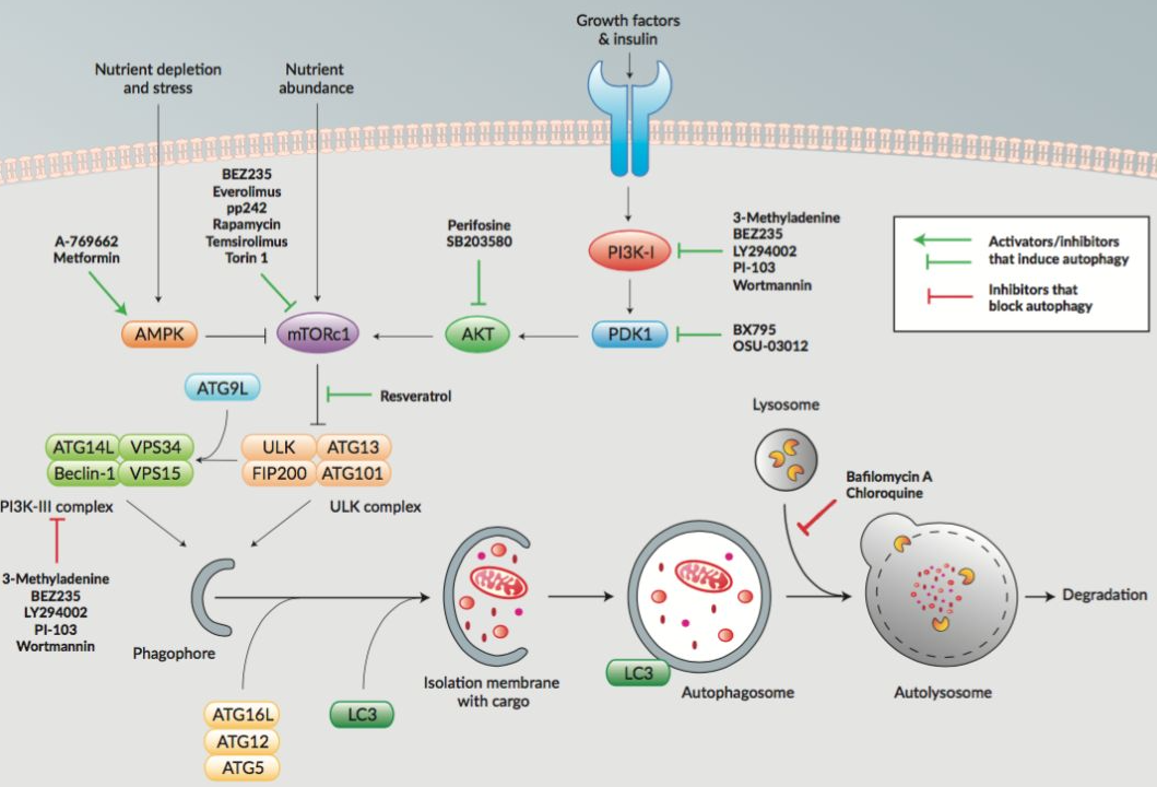 那么什么是细胞自噬?简单来讲,细胞自噬就是细胞的自我消化,将一些暂时用不上的组分降解回收,再经过重新组装成自己需要的东西,废物利用、更新换代。细胞通过这种自我调整机制来保持细胞活力。同时也是一种应对饥饿、机体感染等外界因素影响的应急机制,来维持机体稳态。